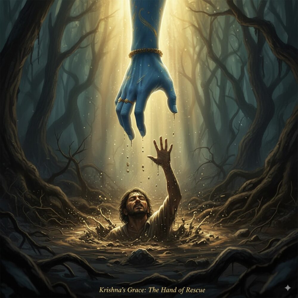 Feeling stuck in desire and unworthiness? Discover how Krishna’s Holy Name is a compassionate hand pulling us from the swamp of Maya. Keep chanting and hold on.